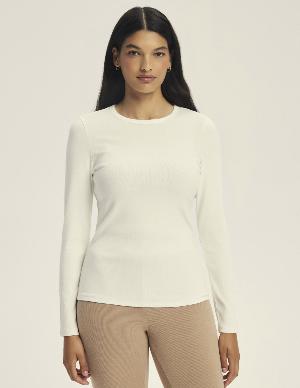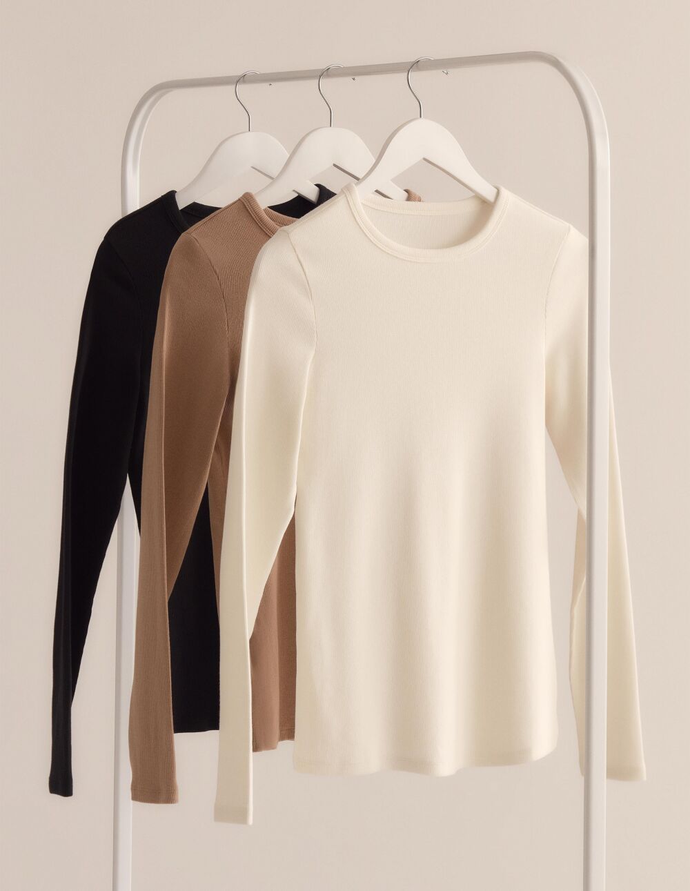 Завиткајте се во мекост што ги смирува сетилата. Кремастата маица Jody плени со својата суптилна боја и нежни ребрести детали, прекрасно нагласувајќи ја силуетата. Долгите ракави, класичното деколте и припиениот крој создаваат основен слој што ќе сакате да го носите секој ден, без оглед на пригодата. Мешавината од памук и вискоза обезбедува мек допир и удобност, како втора кожа. Ова парче изгледа подеднакво добро носено самостојно или во слоеви. Нежно ребресто плетење Тенок крој Класичен кружен врат