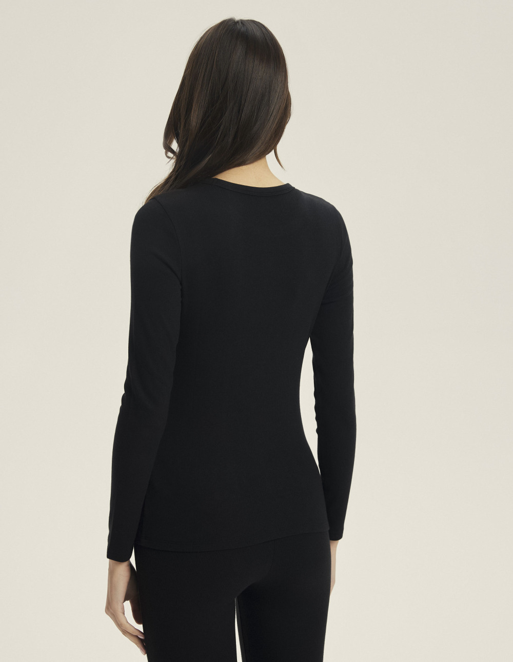 Класичната црна боја добива нова димензија во минималистичката маица Jody. Едноставниот, елегантен дизајн го обвиткува телото во мек џерси кој суптилно се прилагодува на контурите на вашето тело. Цврстиот деколте и долгите ракави создаваат хармоничен ансамбл, подготвен за секоја облека - од утрински прошетки до вечерни состаноци. Мешавината од памук и вискоза обезбедува воздухопловност, удобност и издржливост, што ја прави Jody брз и лесен избор.