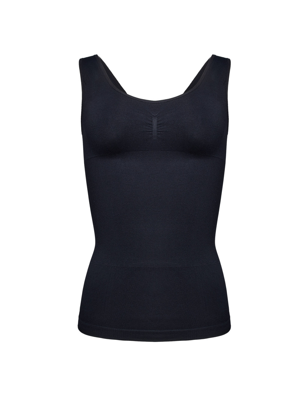Црниот Shrinky обликувачки топ комбинира леснотија и ефикасност – нагласувајќи ги природните облини без да ја жртвува удобноста. Неговата рафинирана конструкција, со пружини кај градите, се прилагодува на различни големини без да ги израмнува градите. Нежната технологија за обликување ги истенчува клучните области – струкот, стомакот и колковите – создавајќи мазна основа за стилизирање. Силиконскиот раб го држи горниот дел на место, додека класичната црна боја додава препознатлива елеганција.