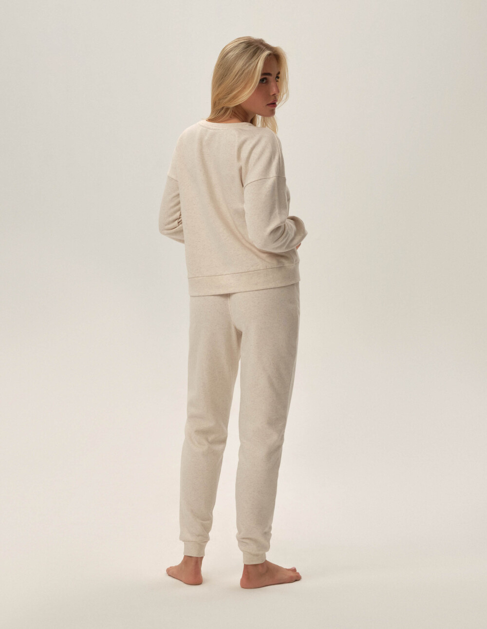 Доколку сакате да се чувствувате безгрижно во слободното време, одберете го комплетот салонки Fune. Мекиот материјал кој одговара на кожата ќе ве загрее во постудените денови и ќе ви обезбеди целосна слобода на движење. Овој разновиден дуксер со спортски крој е украсен со натпис кој ќе ве потсети на магијата во секојдневниот живот. Удобните панталони се финиширани со врвка и врвка на половината, што ги прави совршено прилагодени за секоја фигура.