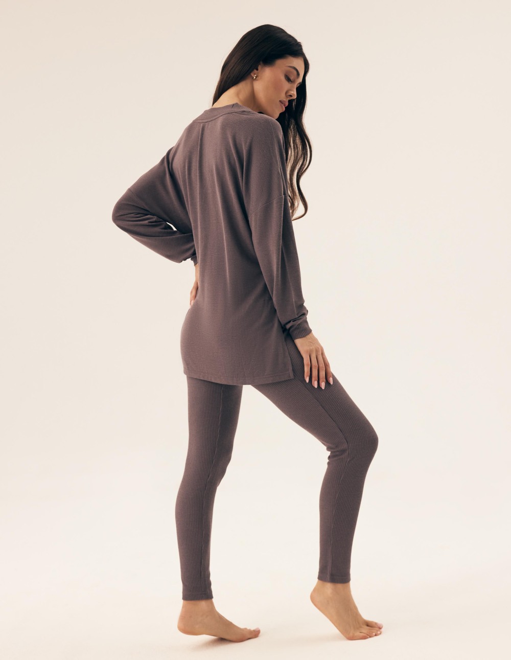 Женскиот ребрест комплет Move ќе ви помогне да продолжите напред со удобност! Комплетот се состои од горен дел со долги ракави и соодветни хеланки со долги нозе. Совршен и за прошетка и за дома. V-деколте достапен во две бои модерен крој
