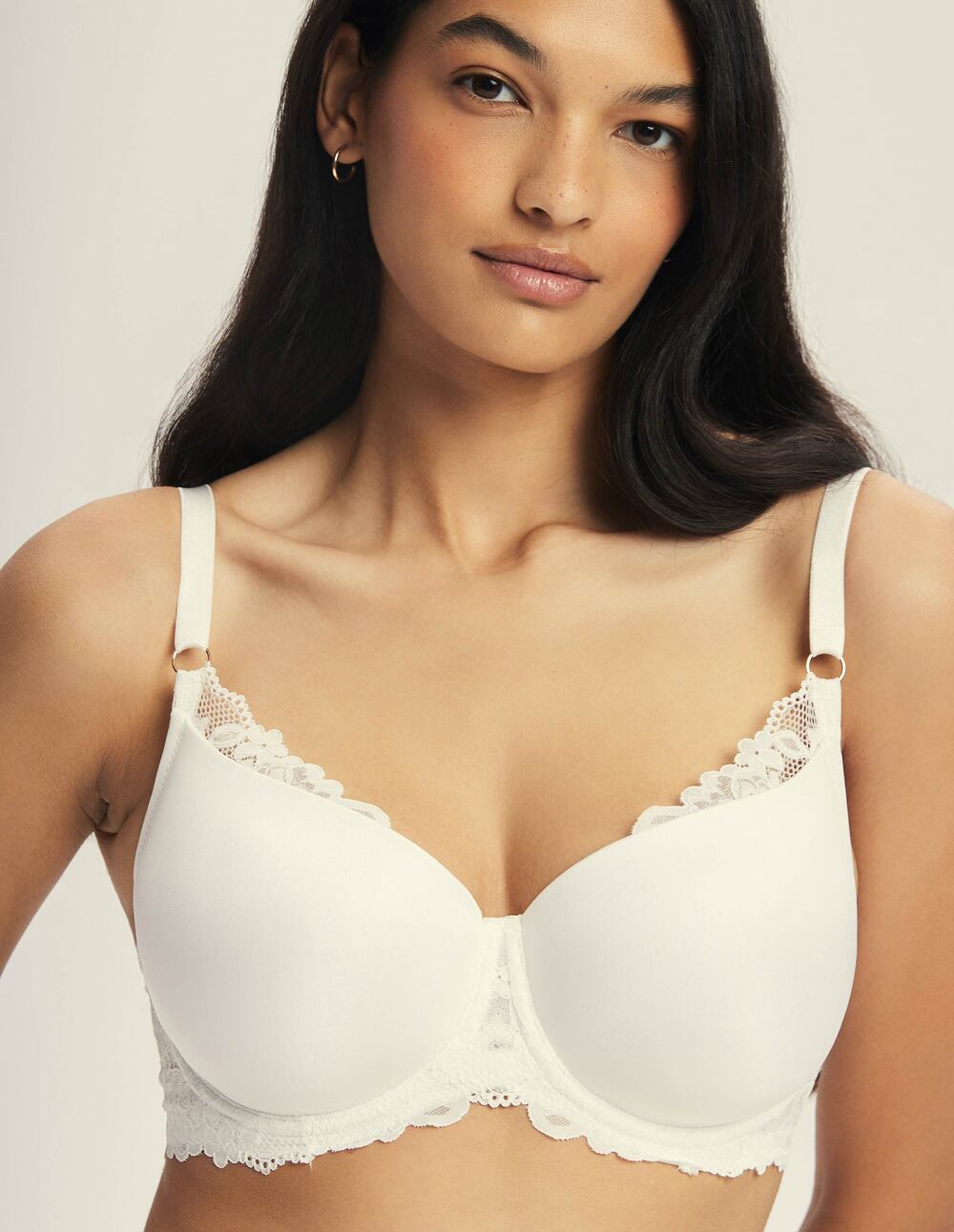 Кремастиот градник Notty со полнење комбинира суптилна боја со нежна линија од чипка што нежно го обвиткува градите. Мазните, пополни корпички ги обликуваат градите, додека жиците обезбедуваат стабилна потпора во текот на целиот ден. Широката лента со ажурна чипка додава допир на леснотија, во контраст со минималистичките корпички. Прилагодливите ремени и класичното затворање со кука и окца на задната страна гарантираат совршено прилегање