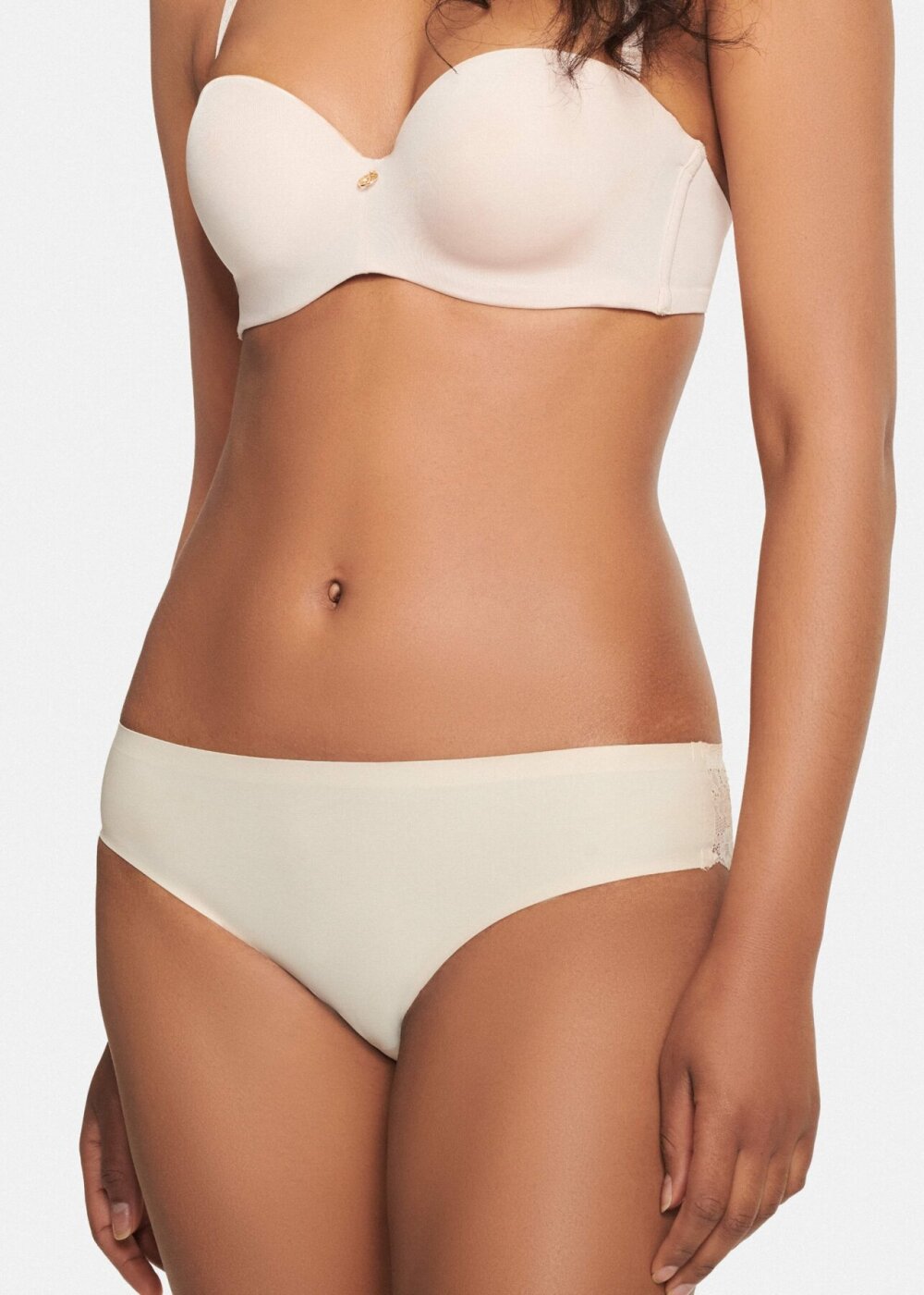 Килоти со класичен крој не може да бидат здодевни. Моделот KISS е сензуален предлог што ќе функционира добро секојдневно. Малку транспарентна чипка назад, во комбинација со рабови со ласерско сечење, ги прави овие гаќи да не се разликуваат дури и под тенки ткаенини. Удобен флексибилен преден дел во комбинација со суптилна чипка, како и мазни рабови кои обезбедуваат удобно носење.