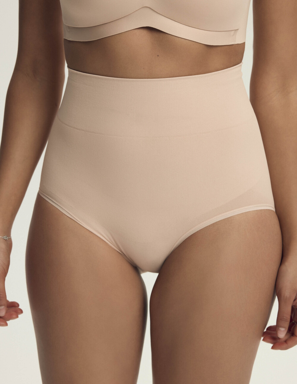 Беж гаќичките Shrinky Shaping се совршени за жени кои сакаат да ја измазнуваат својата фигура без да жртвуваат удобност. Суптилната nude нијанса беспрекорно се вклопува со кожата, создавајќи невидлива основа под облеката. Високиот струк со силиконски украс го прегрнува струкот без да се лизга надолу во текот на денот, додека мекиот материјал со технологија за лесно обликување нежно ги обликува стомакот, колковите и половината. Назад со push-up прекрасно ги нагласува облините, додавајќи хармонија и леснотија на силуетата.