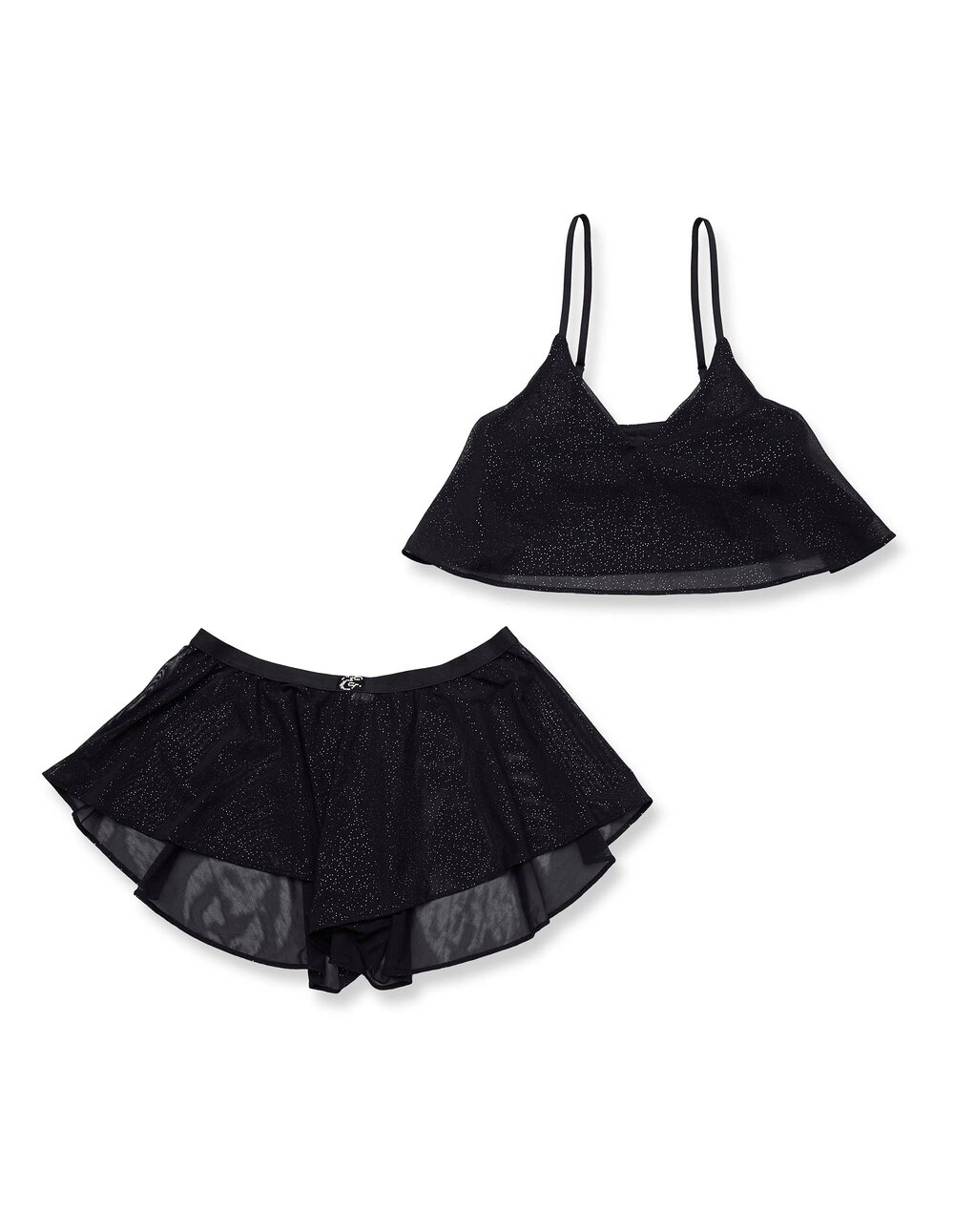 Дали сакате да блеснете за време на вашата секојдневна релаксација? Тоа е можно со женскиот комплет Othilia, кој може да се користи како удобни пижами или како секојдневен комплет. Изработен е од оригинална мрежа со треперливи честички кои сјаат на светлина. Воедно, овој уникатен комплет има класична црна боја, со што ги комбинира најновите трендови со елеганција.