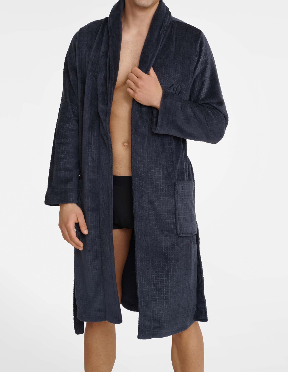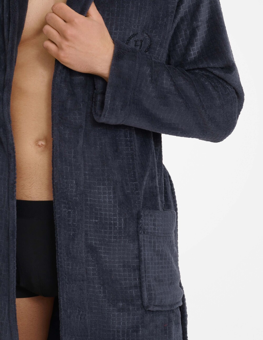 Машката сива бањарка Urban е елегантен предлог за мажи кои ја ценат удобноста и функционалноста. Моделот се одликува со релјефна, фина карирана шема - тоа го прави да изгледа класично и безвременско. Лабавата бањарка Urban совршено ја апсорбира влагата и обезбедува оптимален термички комфор. Можете да скриете мали предмети во два практични џебови.