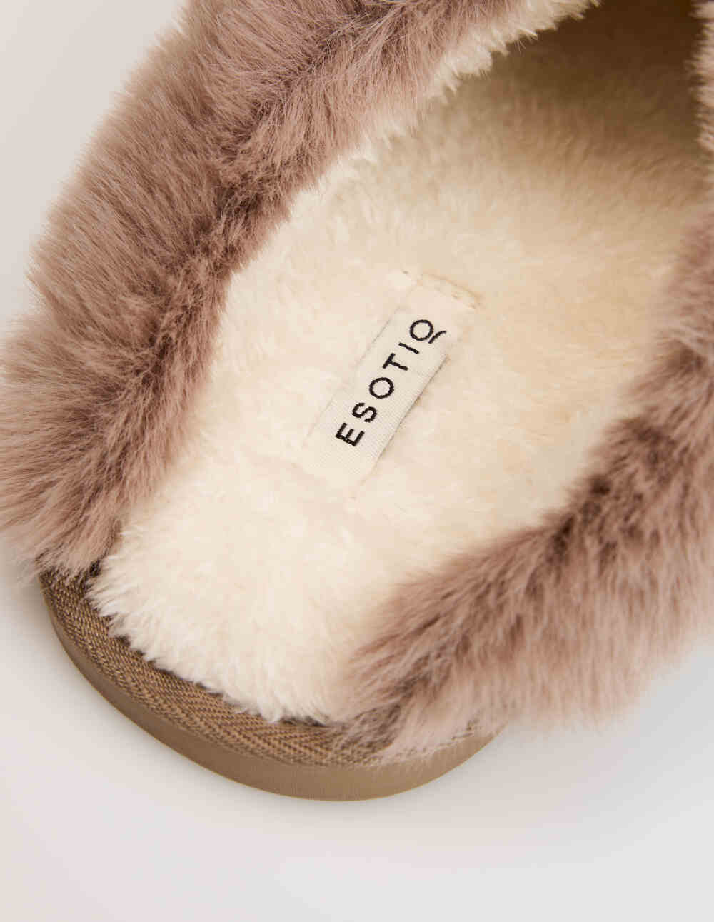 Удобни и топли папучи со меко крзно околу глуждот. Горниот дел е изработен од комбинација на полиестер и полиетилен, а внатрешната постава е од мек полипропилен, што обезбедува комфор цел ден. Ѓонот е издржлив и направен од термопластична гума, која нуди стабилност и сигурност при движење. Совршен подарок за вашите најмили или едноставно да се разгалите себе си!