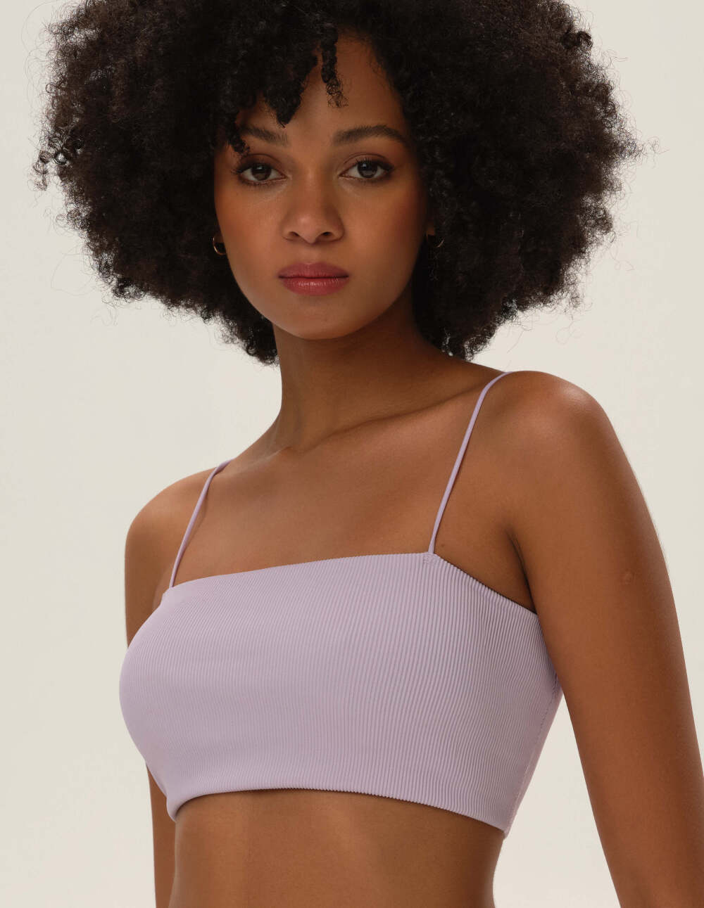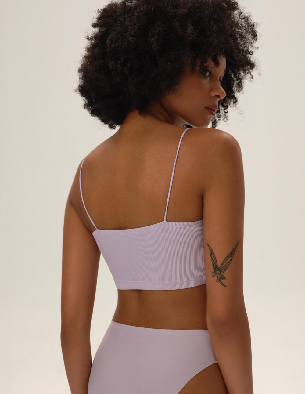 Виолетов краток топ со тенки прерамки е еден од оние парчиња облека што не може да недостасуваат во вашата гардероба - особено ако сте љубител на спортскиот стил. Благодарение на отстранливите чаши, бралетот можете да го носите како што сакате. Можете лесно да го прилагодите нивото на поддршка на градите на вашите потреби. Мекиот памучен внатрешен слој ќе ви обезбеди удобност во текот на денот, а ребрестиот материјал совршено се прилагодува на вашата фигура.
