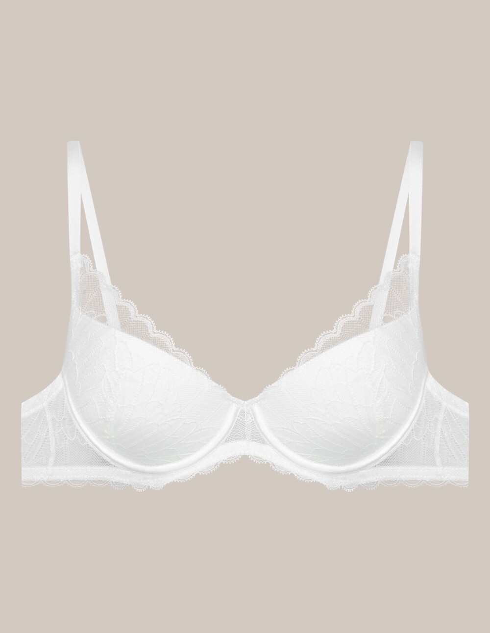 Опра чипкаст пуш-ап градник е исклучително нежен модел во универзална бела боја. Целосно е покриен со суптилна чипка која се протега надвор од чашките и го украсува деколтето. На дното има и украсна завршница. Благодарение на отстранливите влошки, можете постепено да ги кревате градите.