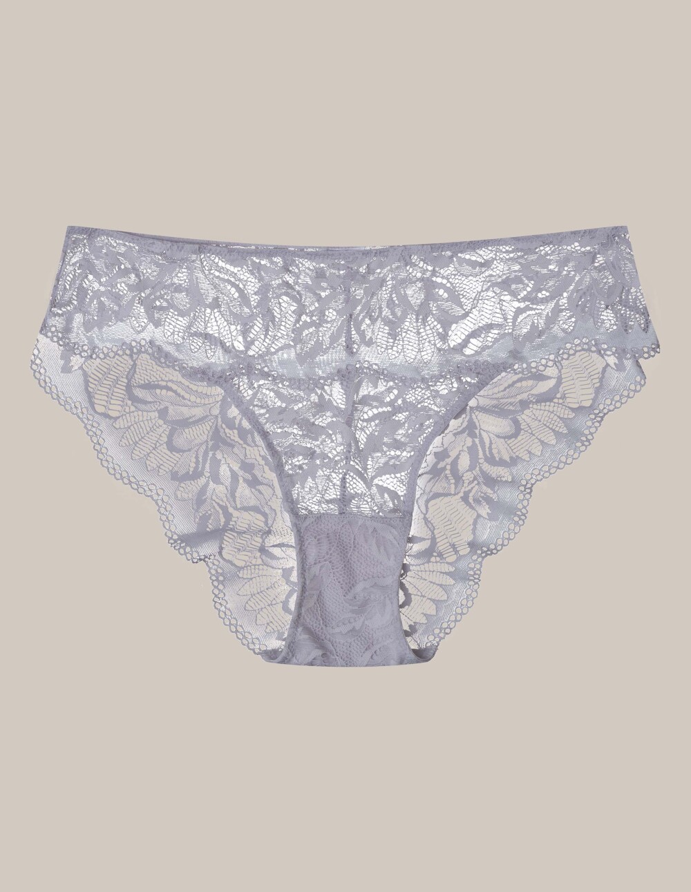 Сивите гаќички Кави се наш знак за класична елеганција и безвременска удобност. Вградениот грб, завршен со двобојна тантела лента, додава женственост и леснотија. За ваша удобност, влошката е изработена од 100% памук за да ви овозможи максимална удобност во текот на денот.