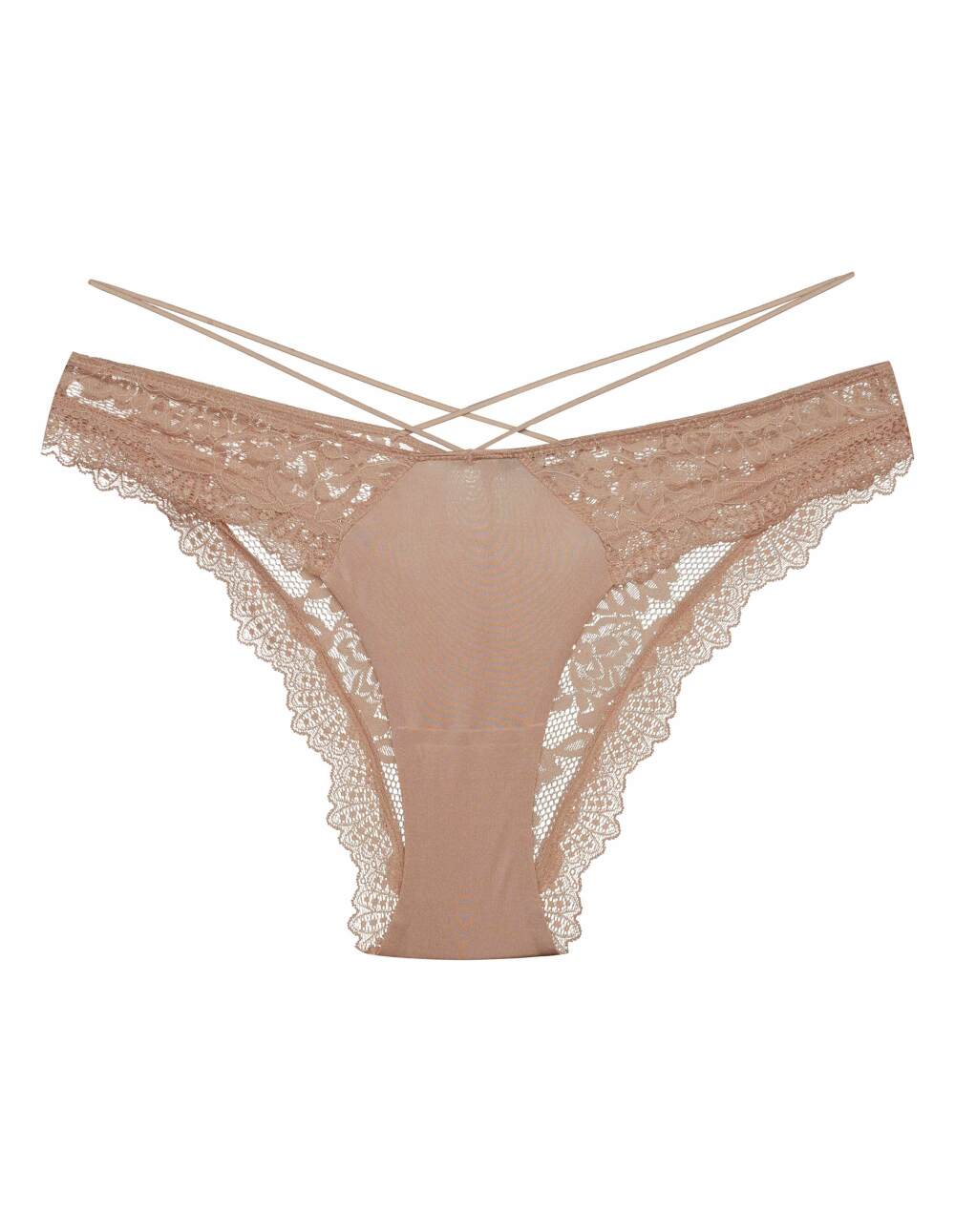 Беж гаќичките Notty пленат со својата суптилна леснотија и нежна боја. Нивните меки линии создаваат мазни транзиции на кожата, додека тенките прерамки на половината додаваат допир на софистицираност. Чипкастите украси ѝ даваат на долната облека романтичен карактер, а воедно го одржуваат природниот изглед. Неутралната нијанса го прави дизајнот да изгледа исклучително мек и елегантен.