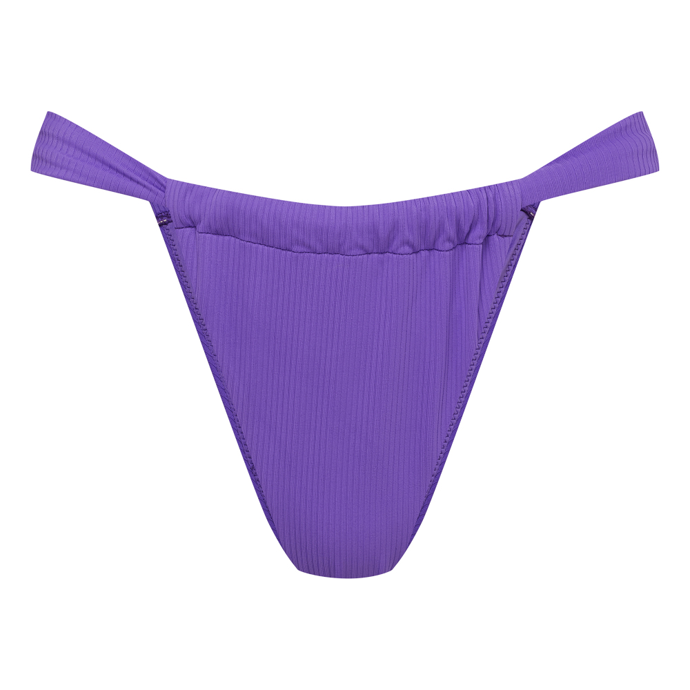Многу сензуалното долен дел од бикини на гребенот ќе го ценат дури и жените со барања. Бикини со тесен крој со широки ленти од ткаенина на страните прекрасно ќе ја нагласи вашата фигура. Меѓутоа, ако претпочитате попокриена верзија на долниот дел од бикини, едноставно расклопете ја ткаенината и распоредете ја како што сакате! Целата работа сепак ќе биде шармантна! Забележете ја и длабоката виолетова боја на долниот дел на бикини од гребен, што ги потсетува топлите морски бањи.