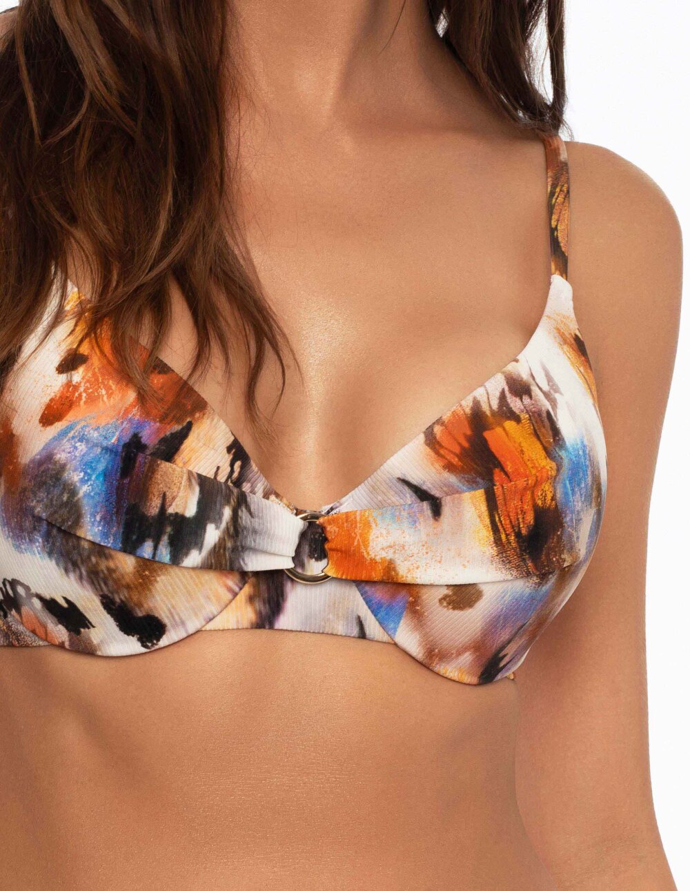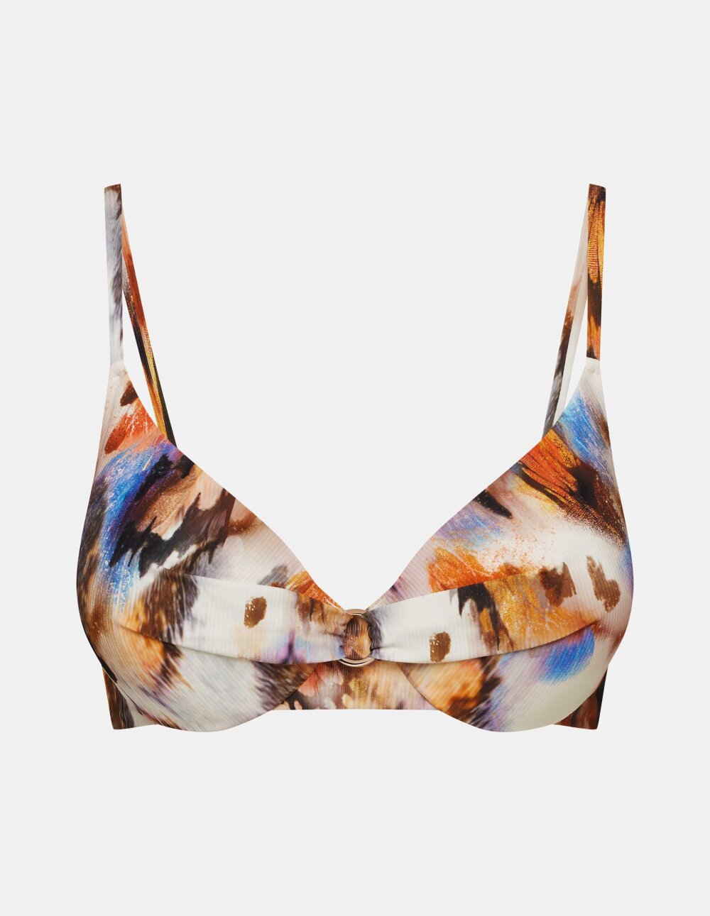 Дали сакате да избирате стилски решенија во вашата секојдневна гардероба? Потоа однесете го овој стил на вашиот одмор со авантуристичкиот дел од бикини со склекови. Ова е модел кој малку ја крева бистата нагоре. Нејзината карактеристика е интересен модел кој комбинира неколку бои, кој потсетува на животински мотиви. Изберете го овој бикини топ-ап и изберете стилски изглед!