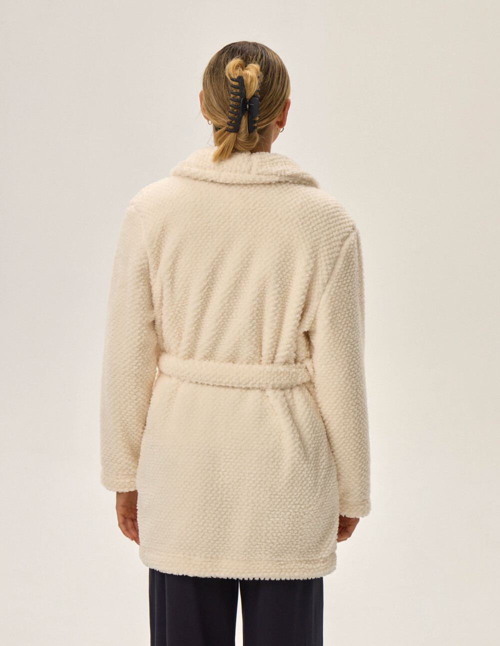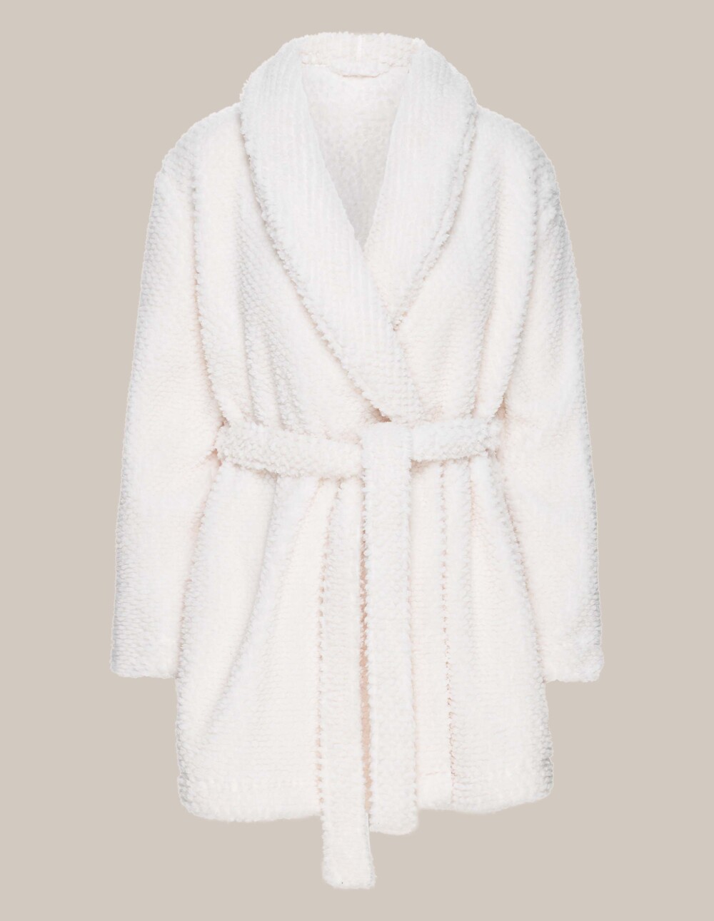 Топлата тоалета на Џејми ќе ве завитка во поладна вечер како вашиот омилен џемпер. Направено од подебела ткаенина, се чувствува како плишано мече. Има долги ракави, деколте од шал без качулка и универзална, светла боја. Можете лесно да го усогласите со вашиот омилен домашен стил. Џејми женската бањарка со пократок крој одлично оди и со пижами и со кошула за спиење.