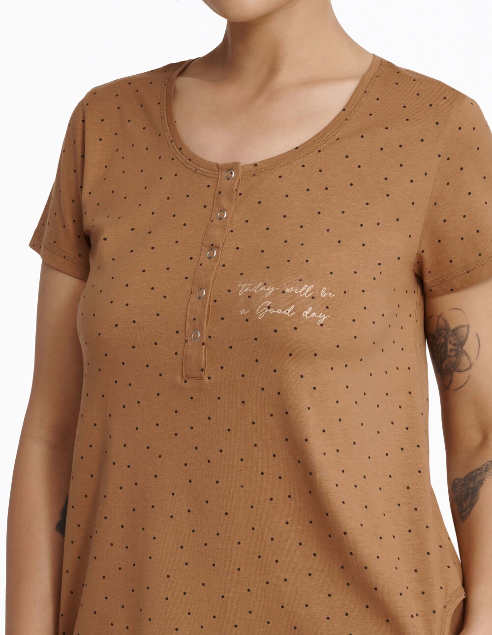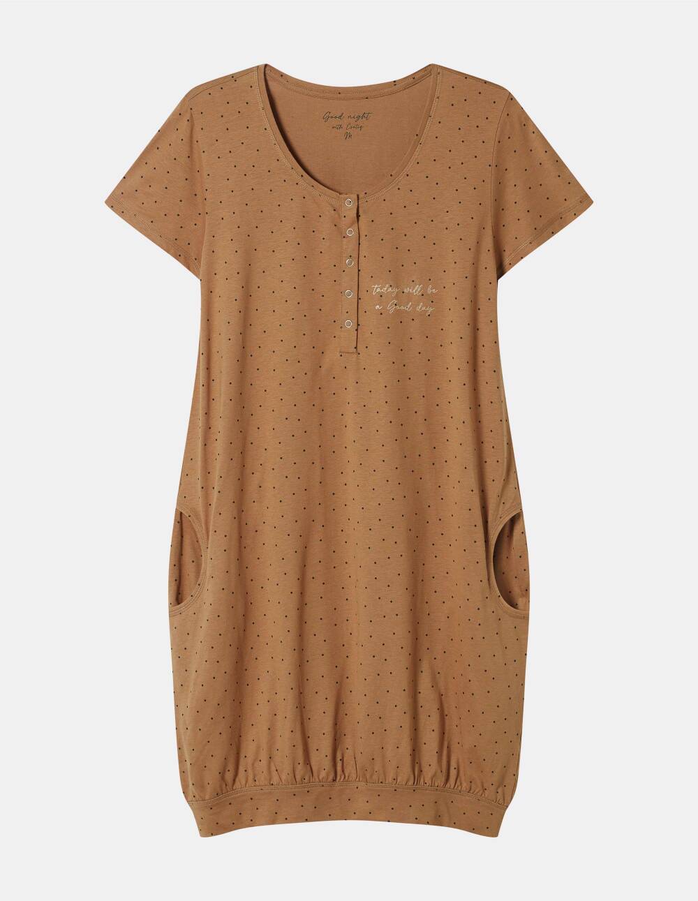 Ноќната наметка за мајки од колекцијата Morning е создадена за жени кои сонуваат за удобно, но и стилски мајчинство. Лабавото вклопување со шармантни ребра обезбедува удобност, додека деколтето што брзо се отвара го олеснува доењето на вашето малечко. Ова памучно парче облека е идеално за повеќе сезони, во кое секогаш ќе се чувствувате пријатно и удобно.