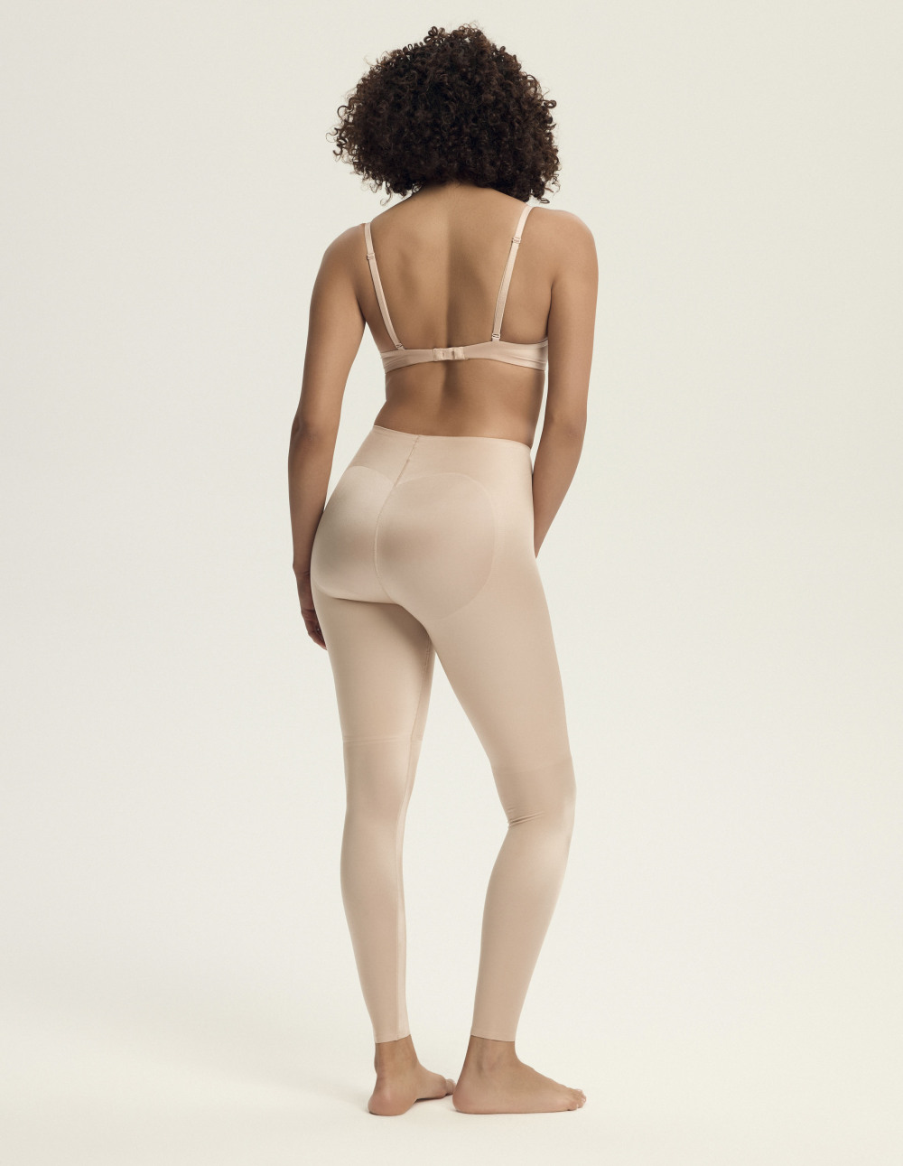 Свилените хеланки во боја на голо се совршени за жени кои бараат суптилно обликување на телото и максимална удобност. Мазната, униформна структура беспрекорно се прилагодува на фигурата, додека високиот струк нежно го измазнува струкот и колковите. Задниот дел е обликуван природно за да ги истакне задникот, без никакви шевови што би го нарушиле ефектот. Совршени за носење под тесна облека, тие исчезнуваат под ткаенината, оставајќи само тенка, мазна линија на ногавиците за среден степен на обликување.