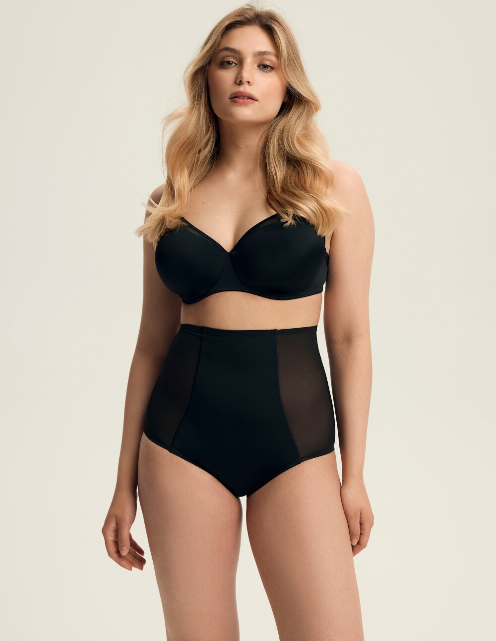Гаќичките Sculpt во класична црна боја се одговор на потребите на жените кои сакаат удобно обликување и визуелно ефект на слабеење. Високиот струк визуелно го издолжува струкот, додека зајакнатите мрежести панели убаво ги истакнуваат колковите и страните. Декоративните кроеви додаваат карактер и грациозно го обвиткуваат телото, дискретно обликувајќи го неговиот облик. Транспарентните елементи на задникот додаваат леснотија и софистицираност. Ниво на обликување: средно.