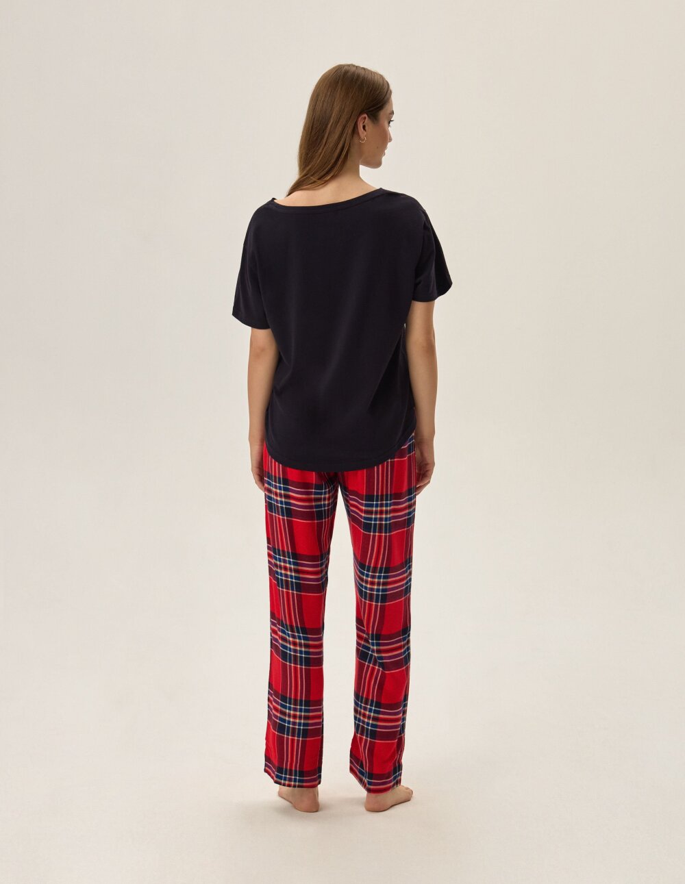 Удобните пижами Jolina се удобни панталони со појас што не се стега и кошула пријатна на допир кои ќе ви помогнат да спиете цела ноќ. Пижамите Jolina се направени од 100% материјали кои се пријатни за кожата, кои дишат: природен, воздушен памук и ткаенина од вискоза. Ова го прави исклучително лесен и удобен. Класичната црвена и темносина проверка брзо ќе ве стави во пријатно расположение.