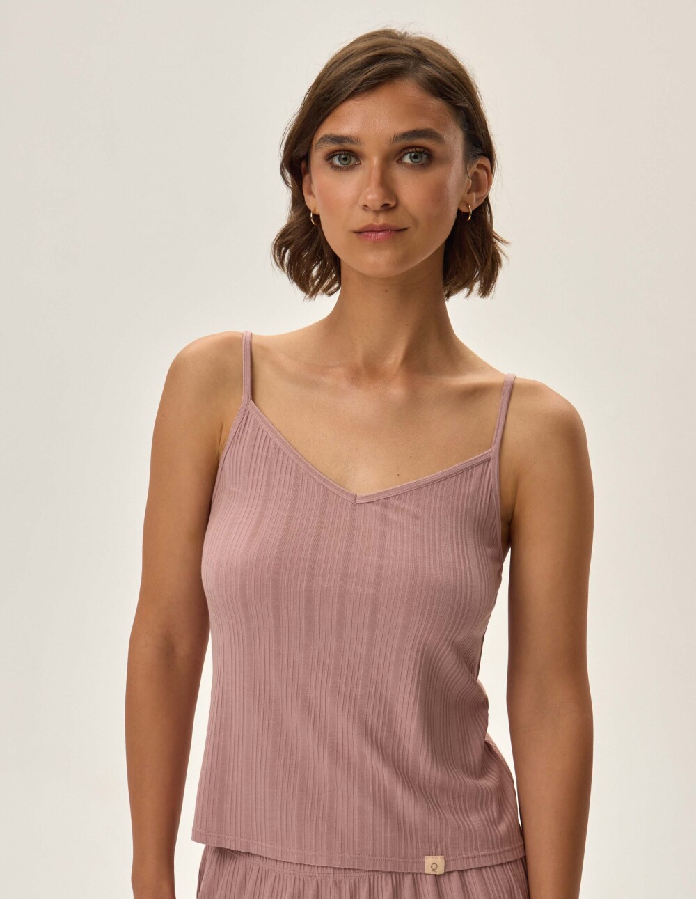 Барате женски пижами совршени за летните горештини? Изберете го комплетот за спиење Pf Jenius. Овој лабав дводелен комплет со слободен крој се состои од маичка на тенки прерамки и класични шорцеви. Розовите женски пижами беа направени од лесна вискоза плетена со пријатна на допир на ребреста текстура.
